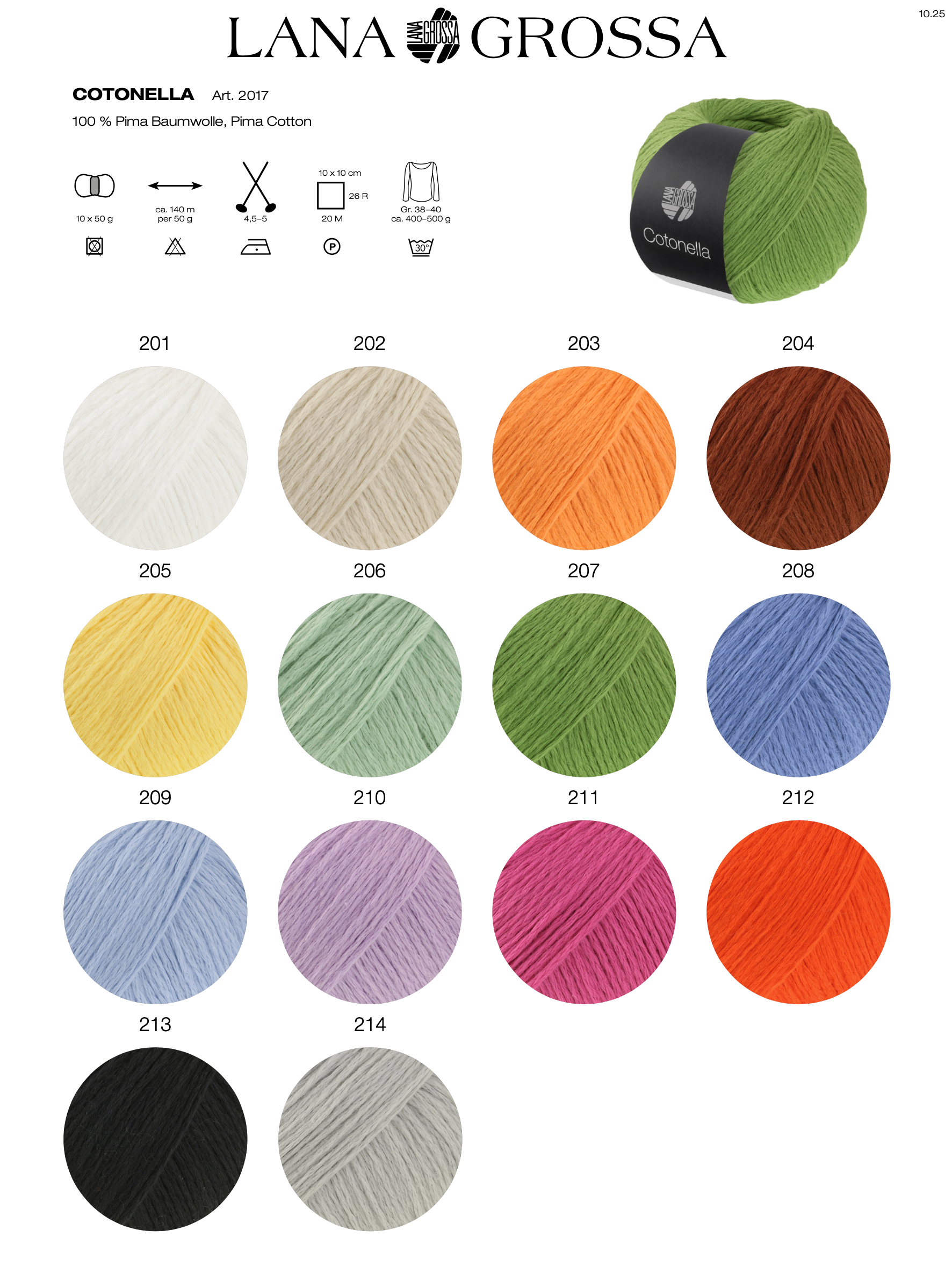 Cotonella von LANA GROSSA ist ein wunderbar leichtes und angenehm weiches Kettengarn aus hochwertiger, unmercerisierter Pima-Baumwolle. Die feine Struktur sorgt für ein seidiges Maschenbild, während die naturbelassene Baumwolle besonders atmungsaktiv und hautfreundlich ist.