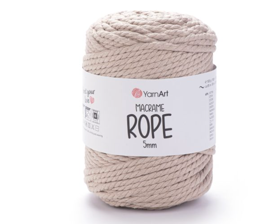 Das Macrame Rope 5 mm von YarnArt ist ein hochwertiges, gedrehtes Garn, das sich perfekt für Makramee-Projekte, Häkeln und dekorative Arbeiten eignet. Durch seine angenehme Stärke von 5 mm lässt es sich leicht verarbeiten und bietet gleichzeitig die nötige Stabilität für Knoten, Wandbehänge, Pflanzenhänger oder Taschen.